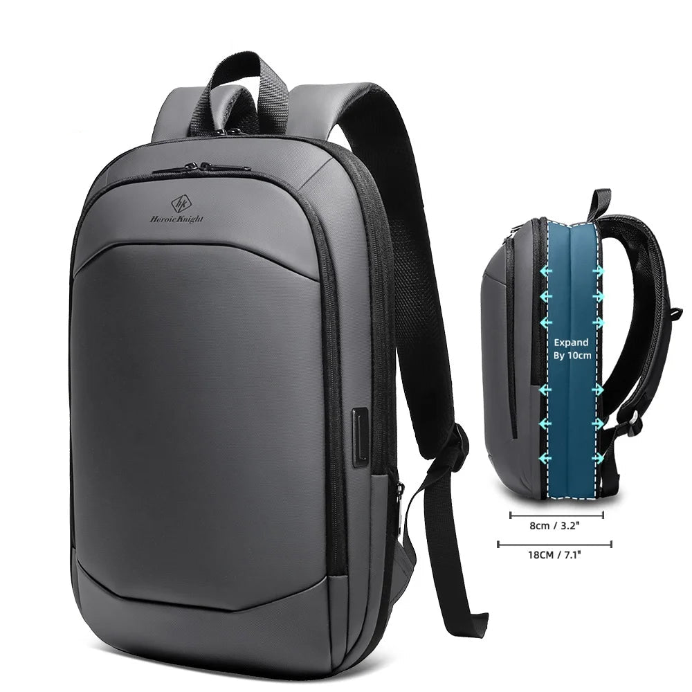 The main compartment accommodates large laptops and essentials, while the hidden anti-theft pocket keeps valuables safe. Its USB charging port provides extra convenience on the move, and the padded straps ensure all-day comfort. With a modern, minimalist grey finish, this expandable backpack is ideal for work, travel, and daily commuting — keeping you organized and looking sharp wherever you go.
