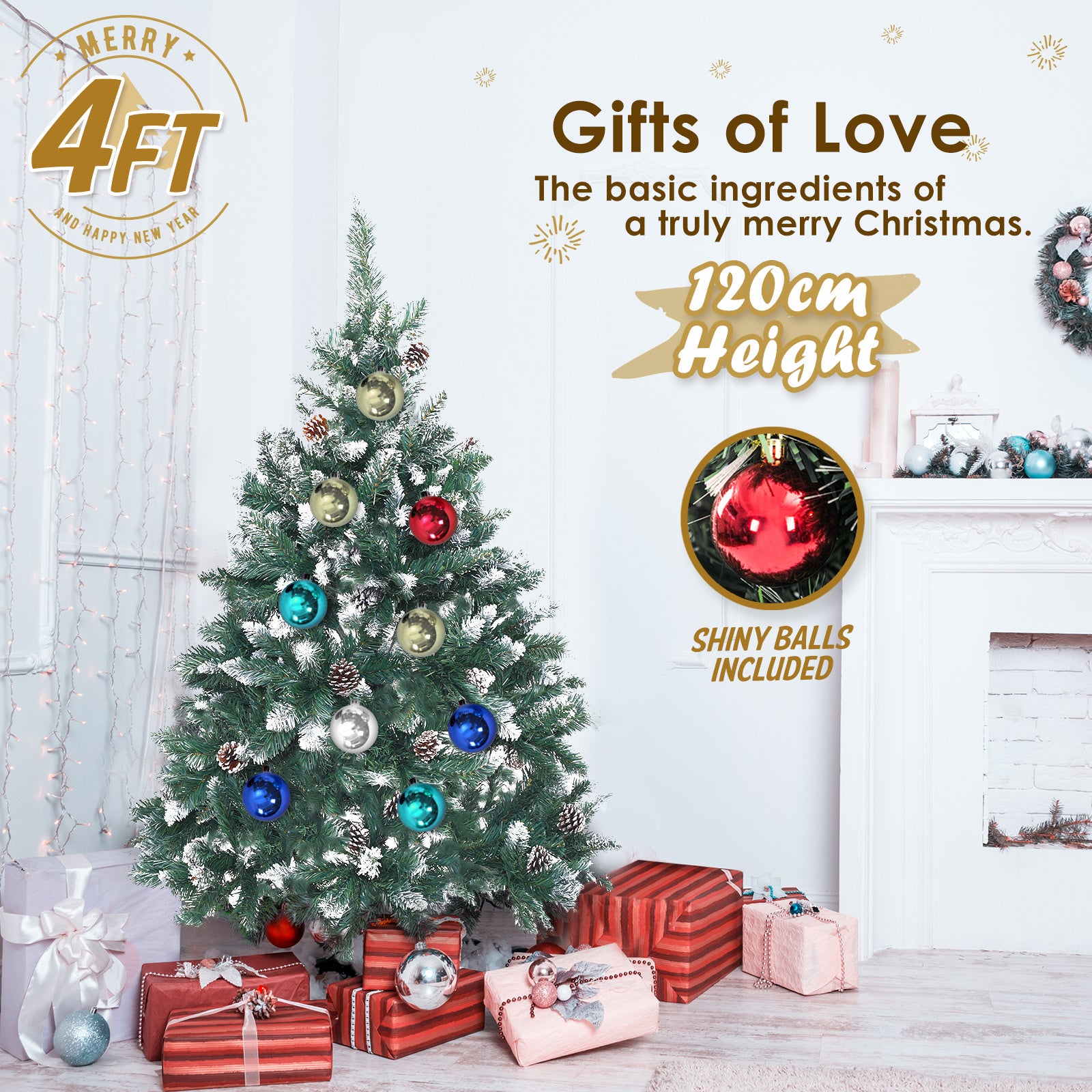 NNEDSZ Home Ready 4Ft 120cm 390 tips Green Snowy Christmas Tree Xmas Pine Cones + Bauble Balls