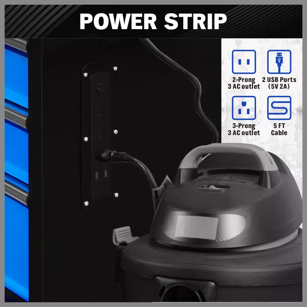 NNEDSZ HORUSDY 42 inch 8 Drawer Tool Cabinet 1000 lbs Wood Top Power Strip Casters Blue