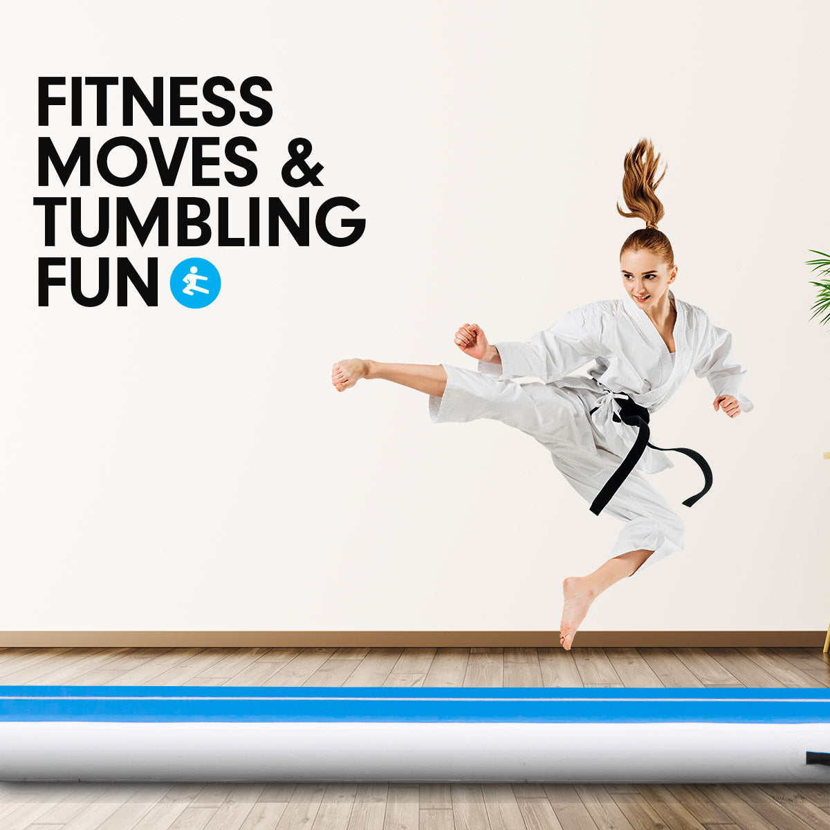 NNEDPE 4m x 2m Air Track Gymnastics Mat Tumbling Exercise - Blue White