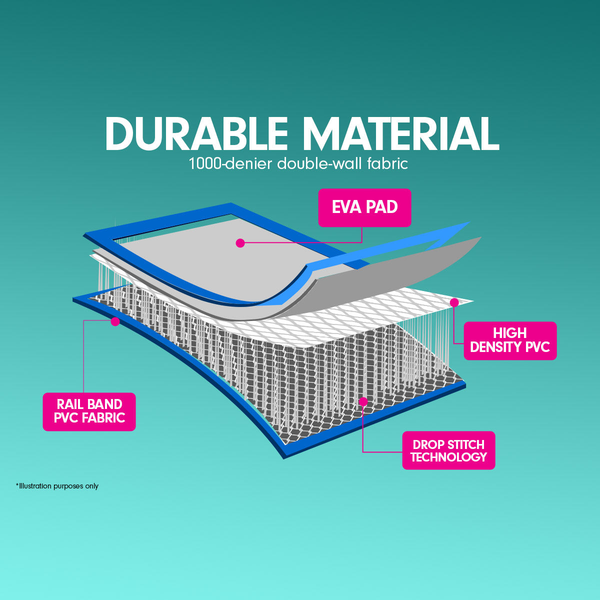 Made of Double-Wall Material also know as drop stitch material, 1.2mm thick durable PVC tarpaulin with better air tightness and durability.