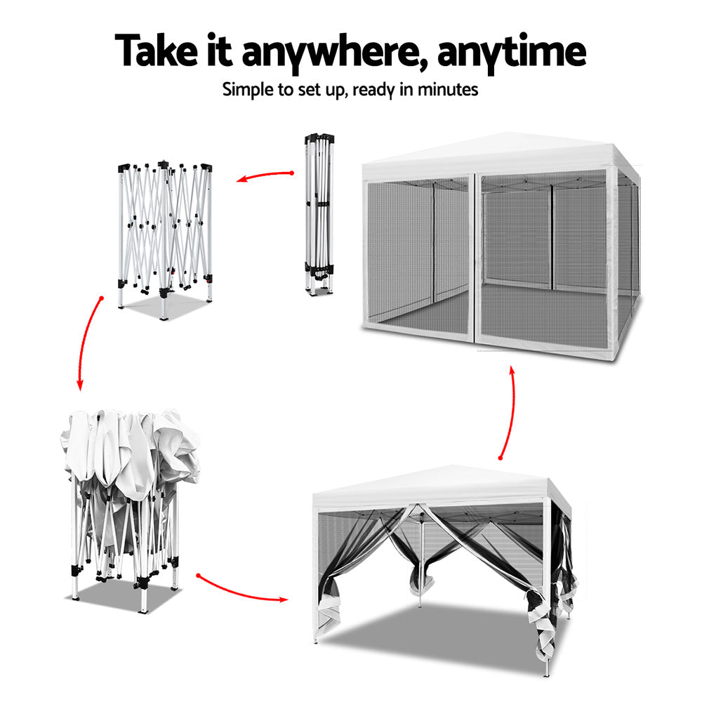 Instahut 3x3m Pop Up Gazebo Wedding Marquee Mesh Side Walls Outdoor Canopy WH
