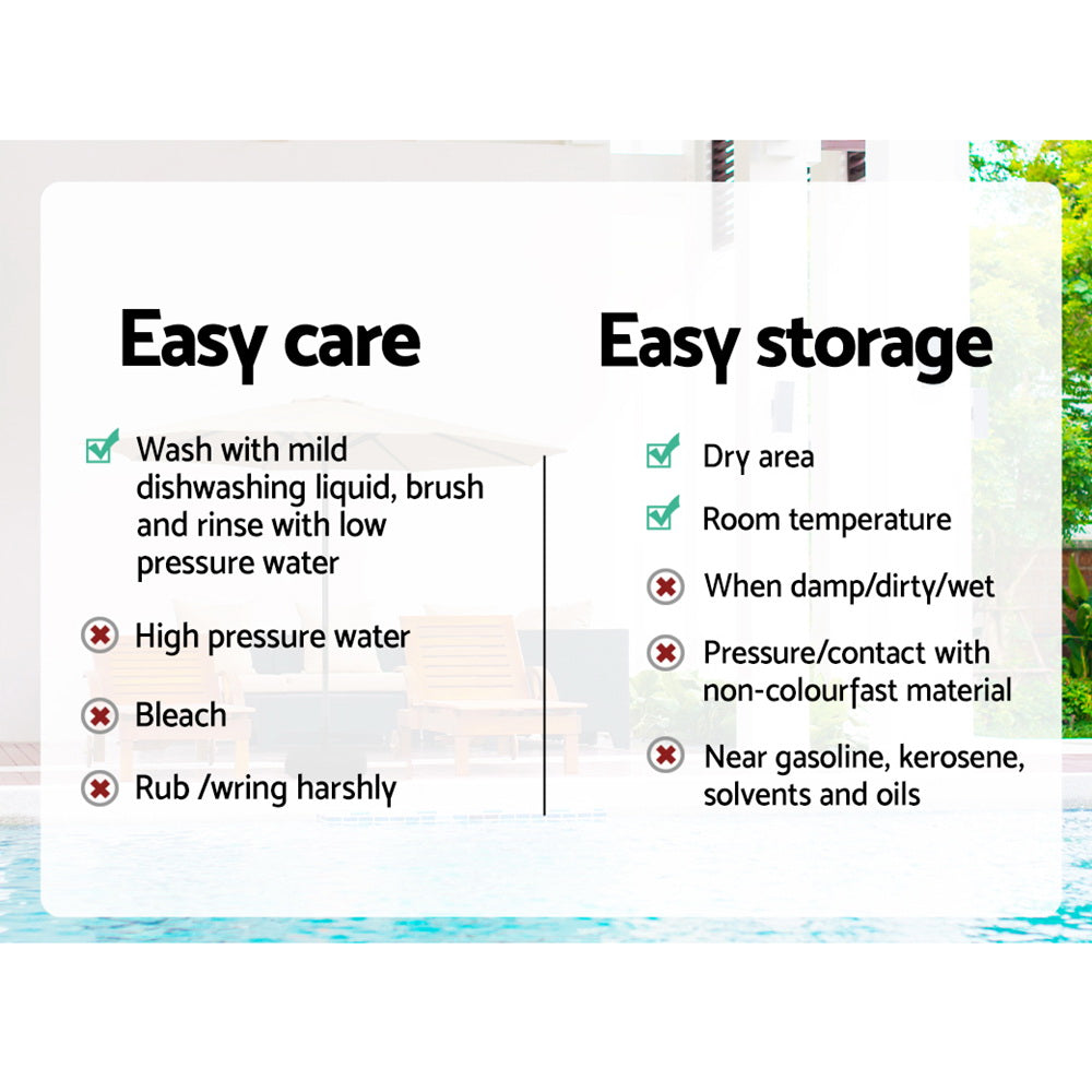 Time to go out and enjoy the good weather with an Instahut Outdoor Umbrella. With high-quality water and UV resistant polyester fabric and durable steel construction, the Instahut Outdoor Umbrella will last you through all seasons. With a 2.7m diameter, the umbrella offers plenty of coverage for your table, friends and family. The tilt function allows you to adjust the shade according to the sun's position, while the fail-safe crank system and 8 steel support ribs make it easy to open and close as needed. Use the umbrella anywhere from the beach to the back patio. It's even easier to maintain – just wash with low pressure water and mild dishwashing liquid, and store in a cool, dry place when not in use. It's that simple! For the easiest summer protection, choose an Instahut Outdoor Umbrella.