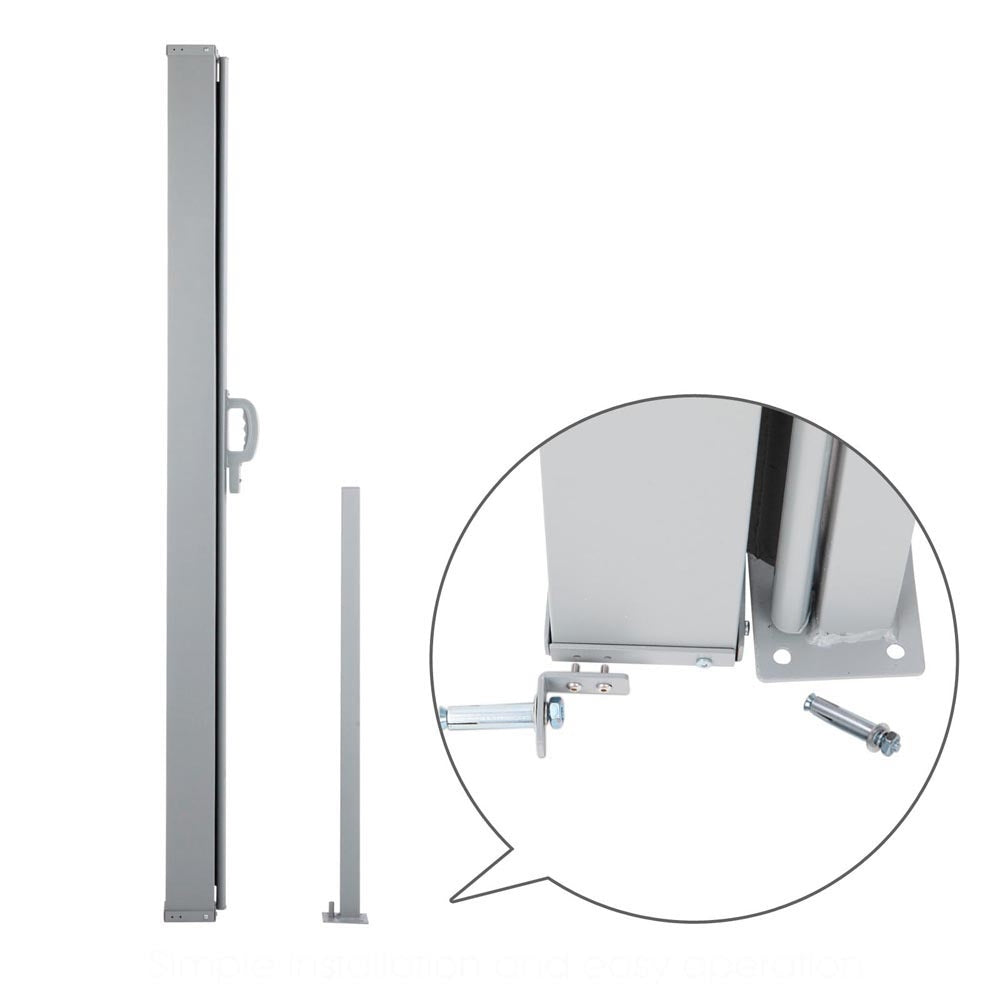 Made from UV resistant and tear proof polyester with robust steel frame, this quality 200 x 300cm retractable side awning is perfect for outdoor application. Excellent at blocking prevailing wind and low-lying sun, as well as providing additional privacy. Simple installation and easy operation.