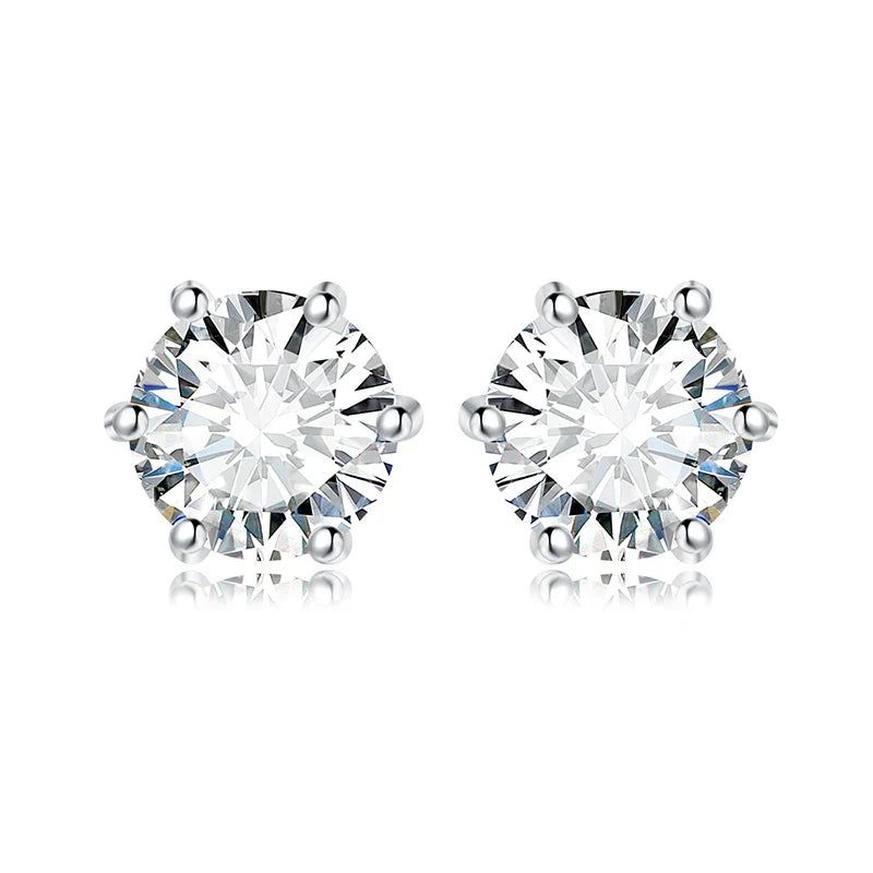 The 5A Cubic Zirconia Stud Earrings feature a timeless round-cut design crafted in 925 sterling silver. Designed for women, these fine earrings make a perfect match for weddings, anniversaries, or classic style outfits. Each earring is secured with a butterfly push-back for a snug and comfortable fit.