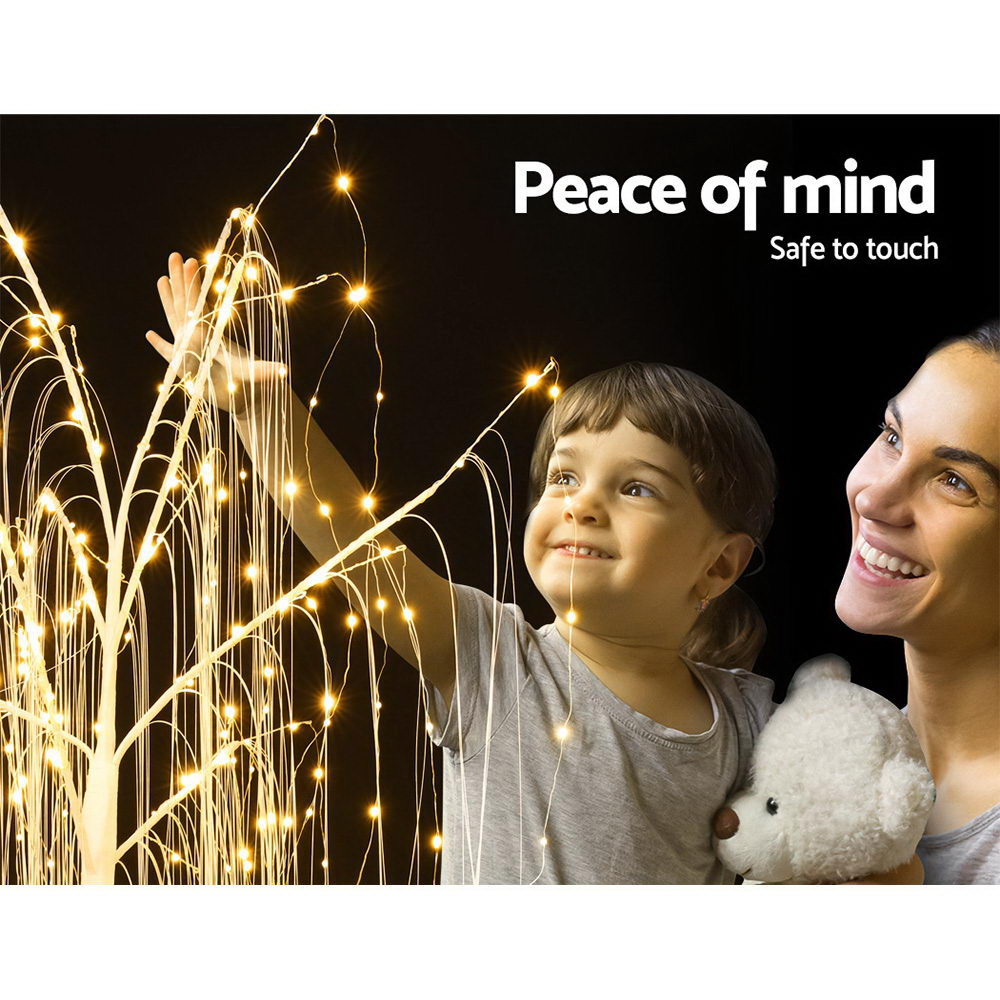 Bring the brilliance of Christmas to your home with our mesmerising Jingle Jollys LED Willow Tree. The 1.8m tall tree features 360 warm-white LED bulbs, including 120 flashing ones, strung on an ethereal and realistic-looking faux willow tree. Durably constructed with a sturdy powder-coated steel frame and metal base, you can expect to light up Christmas for many years to come. The 3m long power cable gives you more flexibility on where you can set up the tree without the need of an extension cable. Place it indoors in your living room, or outdoors on your front lawn or driveway for all your neighbours to appreciate. Do not just limit the tree to yuletide festivities ? it is wonderful as decorative lighting on city streets, shopfronts and special events too. Create a lively and bright ambience throughout the season with our LED Willow Tree.