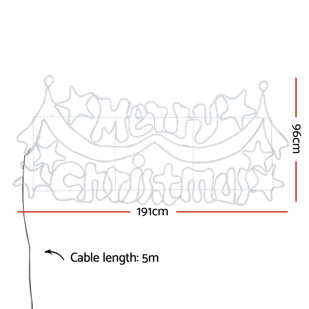 Bring the brilliance of Christmas to your home with our Jingle Jollys LED Merry Christmas Light. Featuring strings of super-bright energy-saving LED lights, the UV-resistant rope light is set in an all-weather iron frame spelling out the festive greeting, Merry Christmas. The long power cable gives you more flexibility on where you can set up the light. You can place it indoors like shopping mall, balcony or outdoors on your front lawn for all your neighbours to appreciate. And you do not need to take the light down as soon as Christmas is over. It is water-repellent and weather-resistant, so you can leave it out well into the New Year. Create a lively and bright Christmas ambience throughout the season.