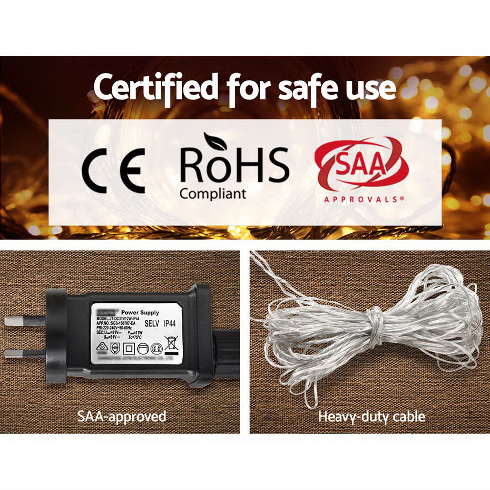 Featuring eight special lighting modes with memory functions, the quality-made 500 LED lights are equidistantly spaced out along the String for even light distribution with a working lifespan of up to 25,000 hours. They are certified safe for all-weather use for both outdoors and indoors and comes with a SAA-approved adaptor and controller. Better still, they consume little energy courtesy of the efficient LED bulbs, and remain cool to the touch always.