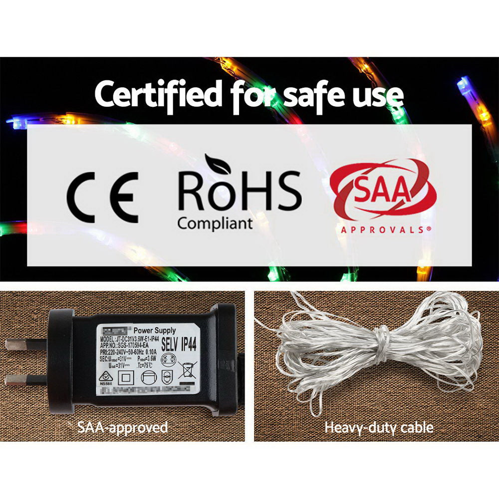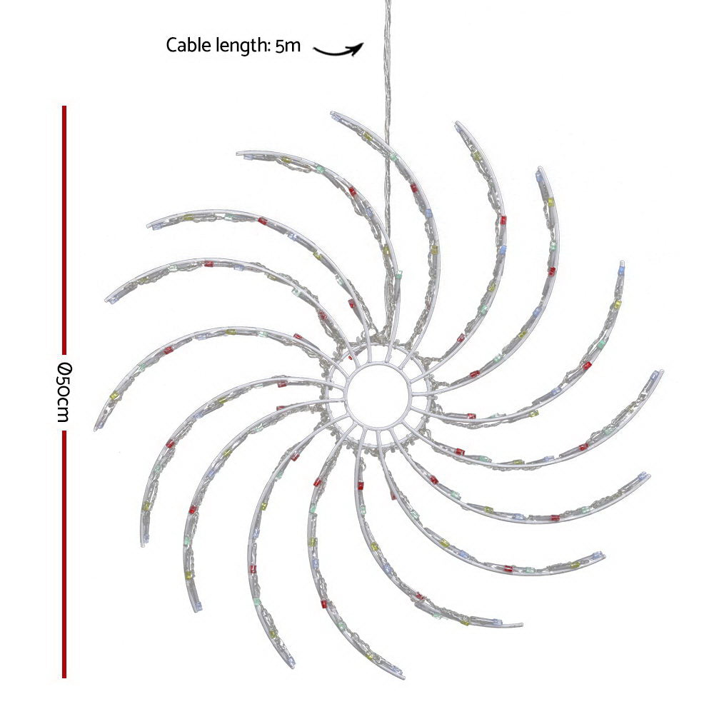 Bring the brilliance of Christmas to your home with our mesmerising Jingle Jollys LED Spinner Light that has 128 super bright energy-saving LED bulbs set in a sturdy white metal frame. The spinner light glows in four colours (red, green, yellow and blue) and as the name suggests, the bulbs change colour in a spinning motion. You can adjust the spinning speed and even set it to zero to stop the spinning altogether. The 9m long power cable gives you more flexibility on where you can set up the tree. Hook the spinner light up indoors in your living room or outdoors for all your neighbours appreciate. Create a lively and bright Christmas ambience throughout the season.