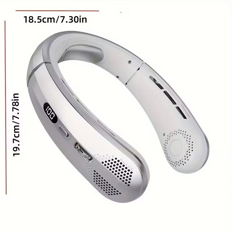 Stay cool anywhere with this comfortable, rechargeable leafless neck fan.