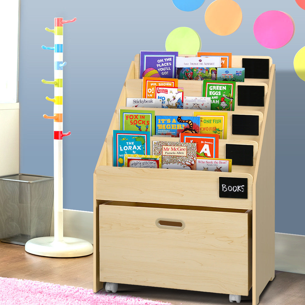 NNEDSZ Kids Natural Wood Bookshelf Storage Organiser Bookcase Drawers Children