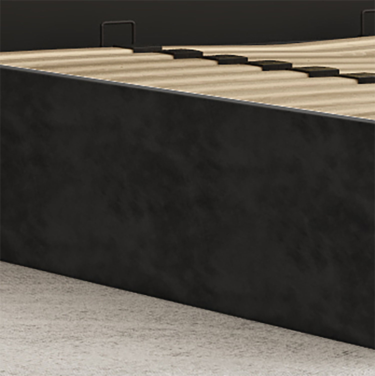 NNEDSZ King Size Elegant Luxury Bedframe with Gas Lift Storage Charcoal Velvet Fabric Golden Trim