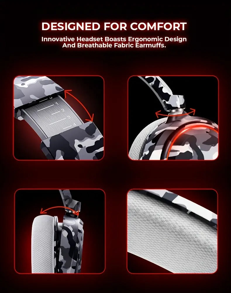 The NNETM Wireless Gaming Headset delivers precise 7.1 surround sound that enhances every detail of your gaming experience. Its 2.4GHz wireless connection ensures low-latency performance for smooth, uninterrupted play. The built-in condenser microphone offers clear voice transmission with effective noise reduction for team communication. With up to 10 hours of playtime and soft padded earcups, this headset keeps you comfortable throughout extended gaming sessions.
