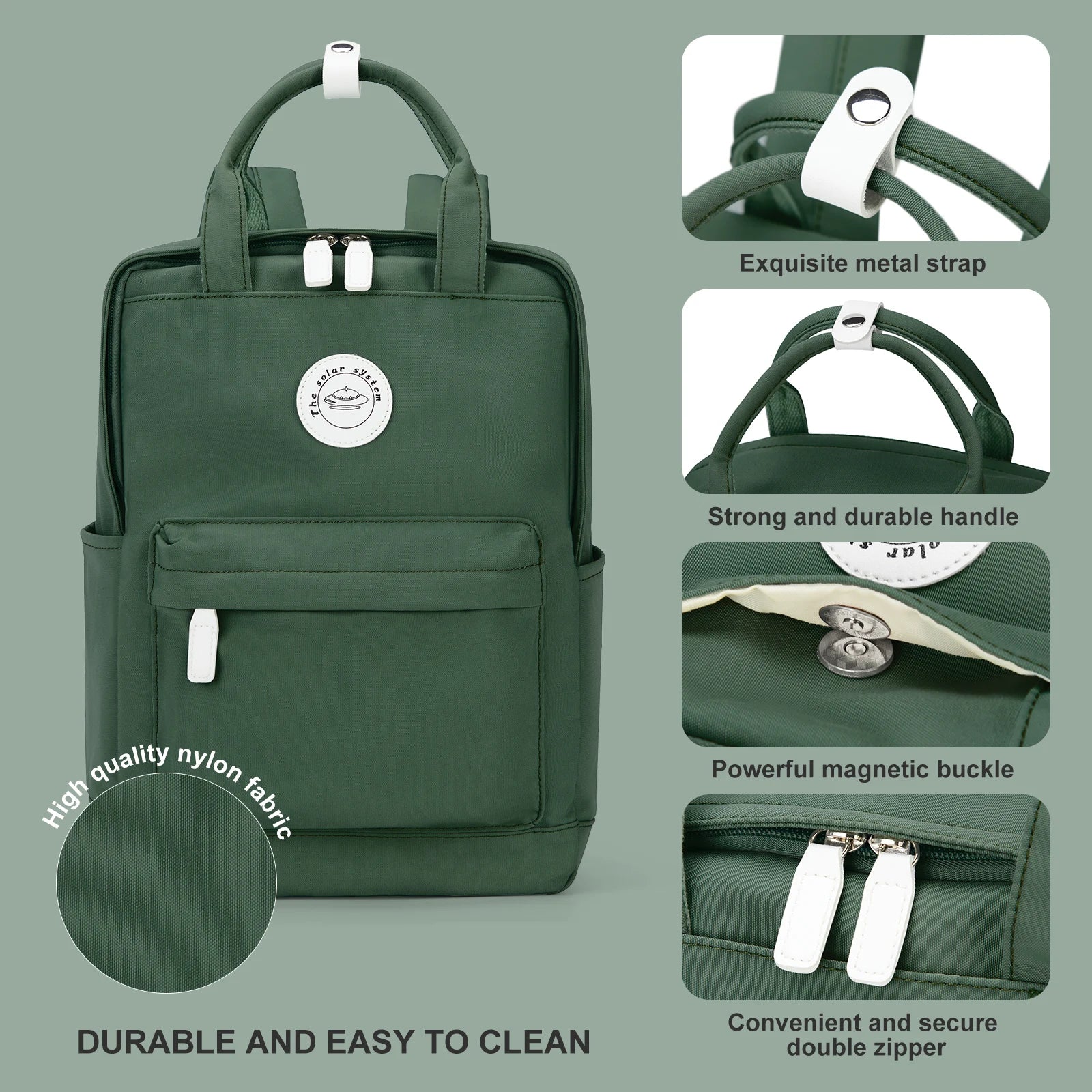 NNEOBA School Nylon Backpack for Teens and Women (Olive)