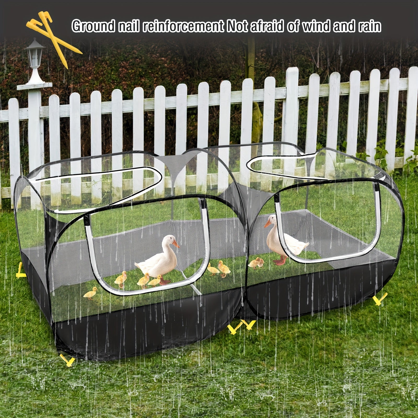The NNETM Large Chicken Fencing Foldable Pet Cage Tent is designed for comfort, convenience, and safety for your chickens or small pets. With its transparent mesh panels, it allows fresh air to circulate freely while keeping your animals secure and visible at all times. The sturdy zipper design ensures easy access, while the foldable construction makes it simple to store and transport.