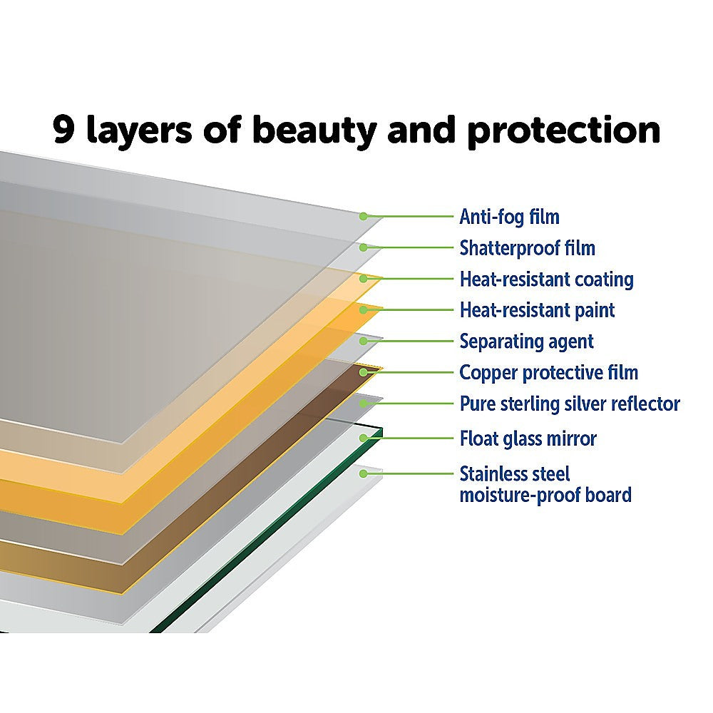 Whether you use the powder-coated MDF base or mount it on the wall, it adds an element of glamour wherever you put it. Not only that, but as a mirror, it also expands the visual perception of the room. In small homes or shops, it provides the illusion of more space as well as more light. The mirror itself has incredible clarity, thanks to its superb craftsmanship. With its float glass mirror, pure sterling silver reflector, copper protective film, separating agent, heat-resistant paint and coating, shatterproof and anti-fog films, and stainless steel moisture-proof board, that's nine layers of beauty and protection. Its neutral silver frame blends in well with practically any colour scheme, while its sleek lines add a touch of sophistication to your room. It's an addition to your home you won't want to go without. Order yours today!
