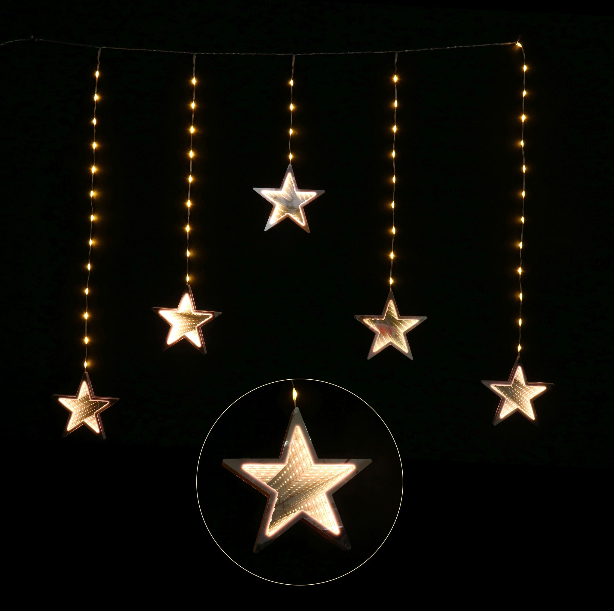 Elevate your space with our enchanting LED Infinity Stars Curtain Lights, available in Cool White and Warm White. Featuring 240 bright LEDs arranged in 5 strands, each adorned with 5 stars spaced 20 cm apart, these lights create a mesmerizing steady glow. Perfect for hanging inside window frames, they add a touch of magic to any room. Transform your home into a dazzling display and let your creativity shine!