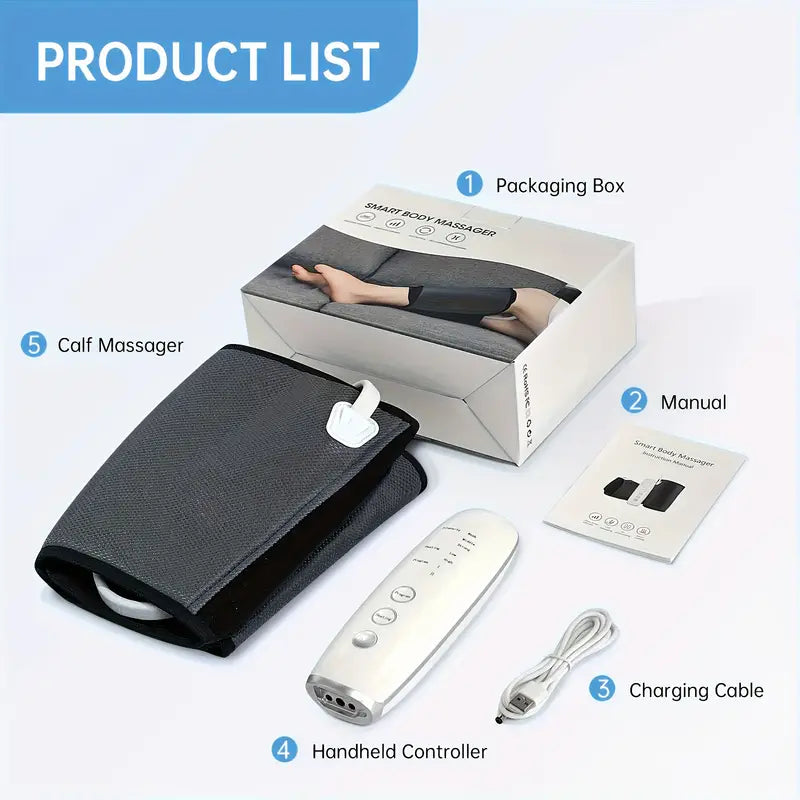 The massager’s adjustable wraps ensure a snug fit around various body parts, while the handheld controller makes it easy to switch settings on the go. Equipped with a 2500mAh rechargeable lithium battery, this leg massager is USB-powered and provides up to 120 minutes of use per charge. Whether you're at home, working in the office, or traveling, the lightweight and portable design allows you to enjoy the benefits of air compression and heat therapy wherever you go. Treat your legs, feet, and arms to soothing comfort and improved circulation with this versatile massager.