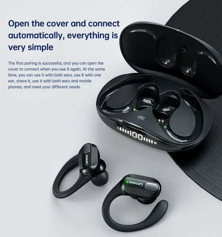 Designed for active lifestyles, the secure earhook design keeps the earphones firmly in place, making them ideal for workouts and daily use. The LED power display lets you easily track battery life, while the compact charging case provides convenient recharging. A practical and comfortable wireless headset for everyday listening, calling, and on-the-go performance.