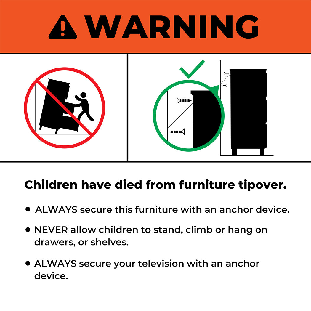 ALWAYS secure this furniture with an anchor device;
