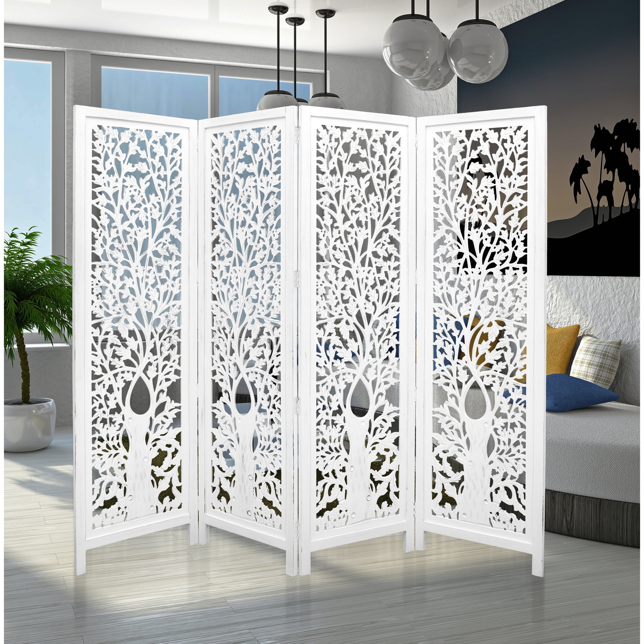 Effectively use the available space in your home with this room divider. The timber screen creates a private space in a room while also adding to its aesthetic appeal. The white colour screen is designed in an exotic pattern using sustainably harvested solid mango wood. This particular wood is well-known for its high water resistance, long durability, and beautiful texture. The traditional style timber screen with strong legs can extend up to 1.8 metres and serves as both a space-saving and a space-dividing furniture piece. The artistic work on the screen, which includes engraved tree and leaf replicas at regular intervals, and a curvy top give it a beautiful appearance, filling the entire area with positivity. The screen is divided into 4 panels that are easily foldable. Lightweight yet strong, the room divider uses high-performance metal hinges that can withstand daily use. This fully assembled timber screen comes with a one-year warranty.