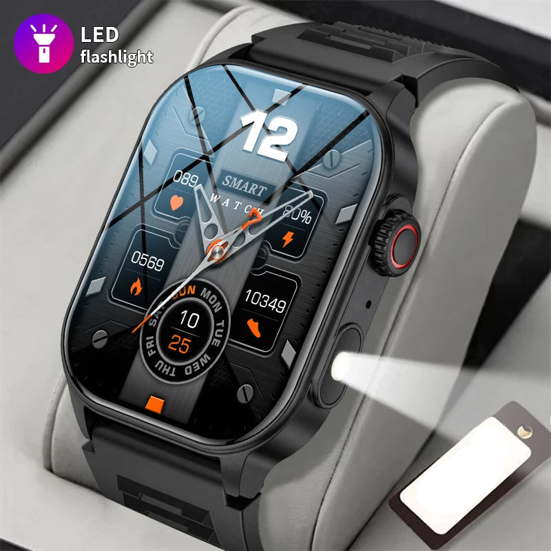 The Smart Watch Flashlight 2.01" HD redefines what a smartwatch can do. Featuring a vivid large display, Bluetooth calling, and AI voice control, this watch keeps you effortlessly connected while you focus on your day.