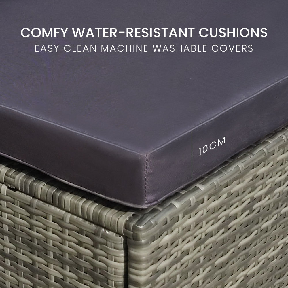 The Ottoman includes an ultra-comfy 10cm thick water-resistant seat cushion. The high-quality UV-resistant handwoven Suntech wicker in Marl Grey weave has a premium natural textured look. Mix and match with other London Rattan modular pieces to create your own custom outdoor setting. You can set it up in whatever configuration works best for you, making this London Rattan outdoor ottoman a great addition to any outdoor space.