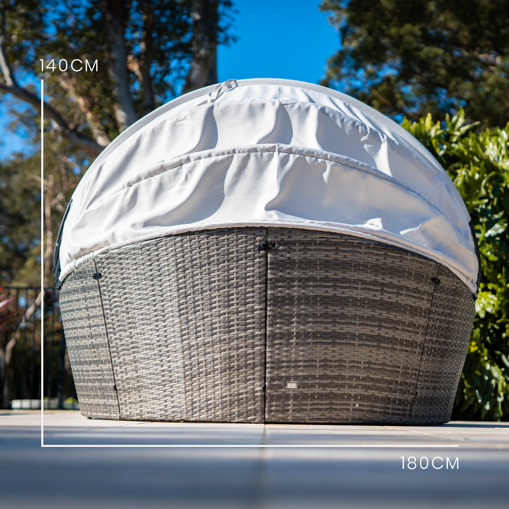 Introducing the Noosa Heads Collection Outdoor Day Bed by London Rattan, the perfect companion if you want to enjoy and relax on your deck, in the garden or near the pool. Fitted with a retractable roof canopy which can be adjusted depending on how much shade you require. This premium piece of outdoor furniture comes with four throw pillows, and is designed to stand the test of time and provide utmost comfort.