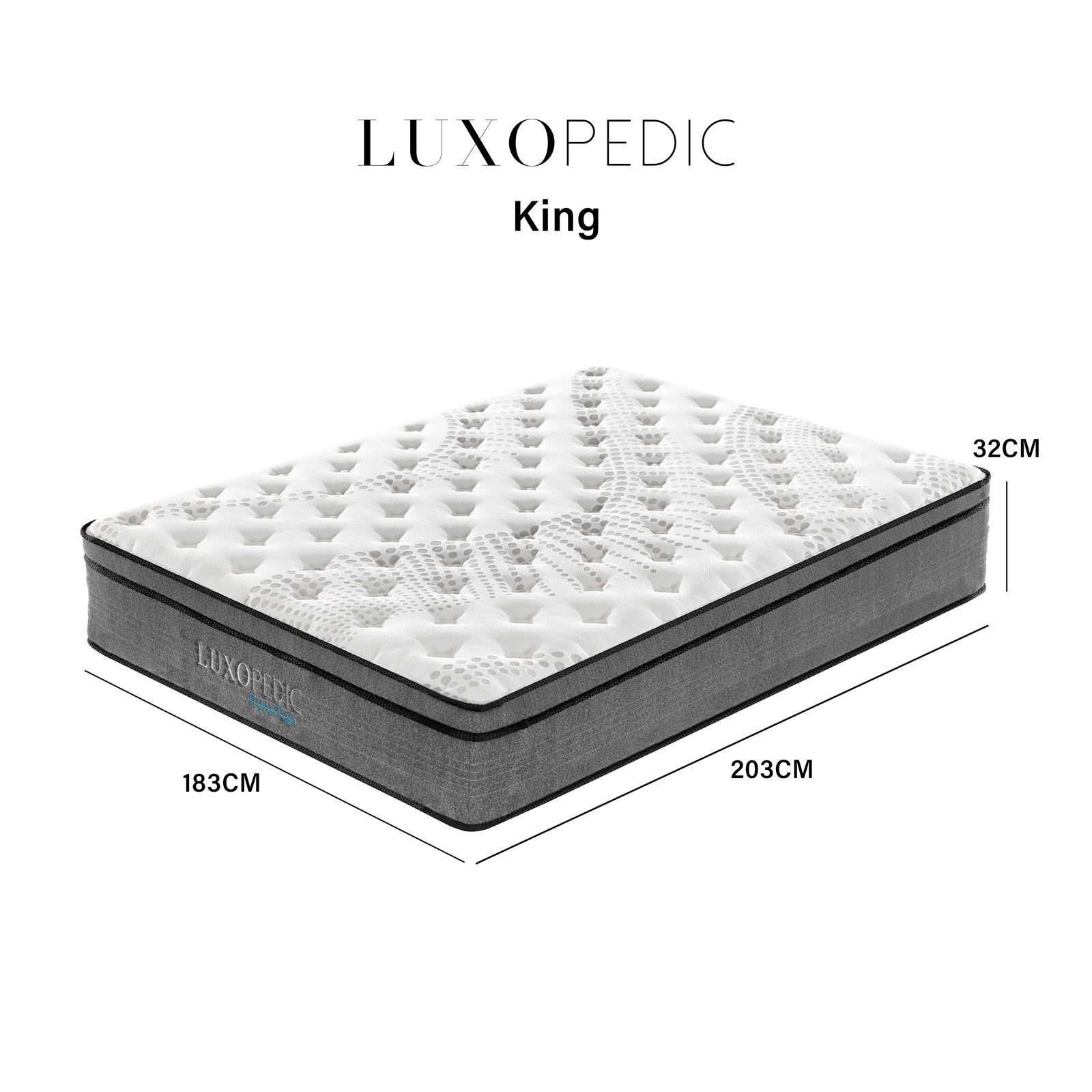 King: 183cm x 203cm x 32cm