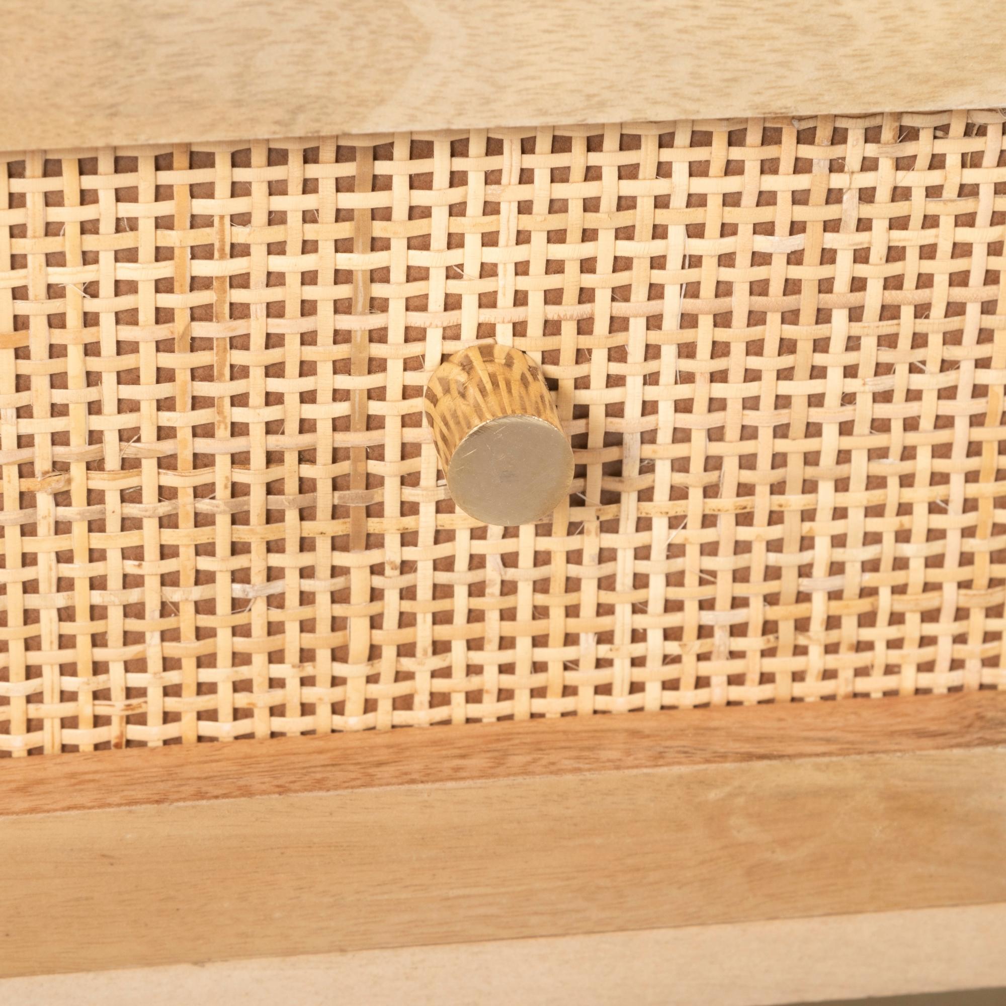 This 1-drawer coffee table with an open shelf is a furniture masterpiece displaying the beauty of natural aesthetics. It is a versatile furniture, designed in the contemporary style. It looks lovely in the living area. Made of sustainably harvested mango wood and MDF, the coffee table has gorgeous rattan weave on the drawer front. Mango wood is valued for its robustness, longevity, and resistance to mould or moisture. Full-extension metal runner and brass powder coated metal handles on the drawer add to the practical functionality of the coffee table. Strong metal legs provide a sturdy base for the furniture. Due to natural colour, the furniture piece brings a sense of cosiness and warmth to your living area, and it complements diverse interior decor styles or furniture pieces. The easy-to-assemble furniture comes with a one-year warranty.