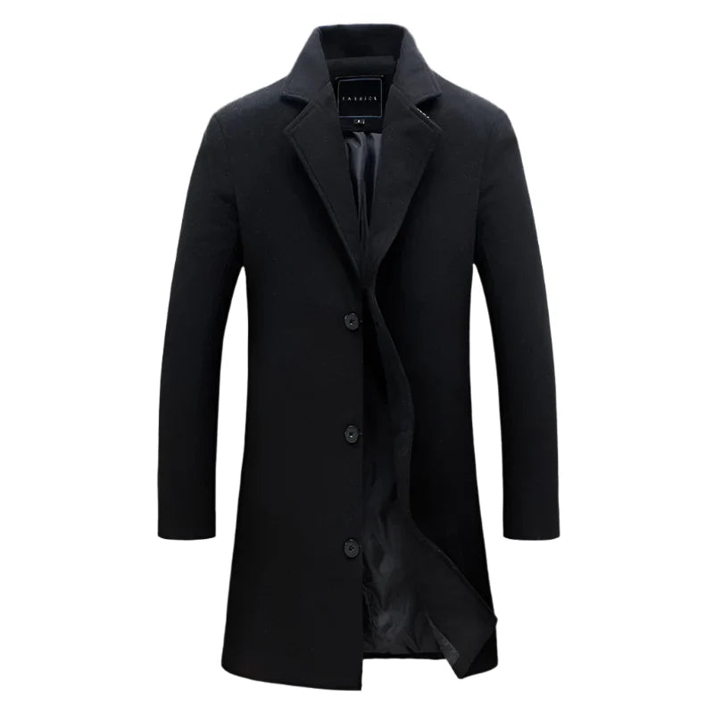 NNEOBA Men's Cotton Wool Blend Long Windbreaker Coat (Black)