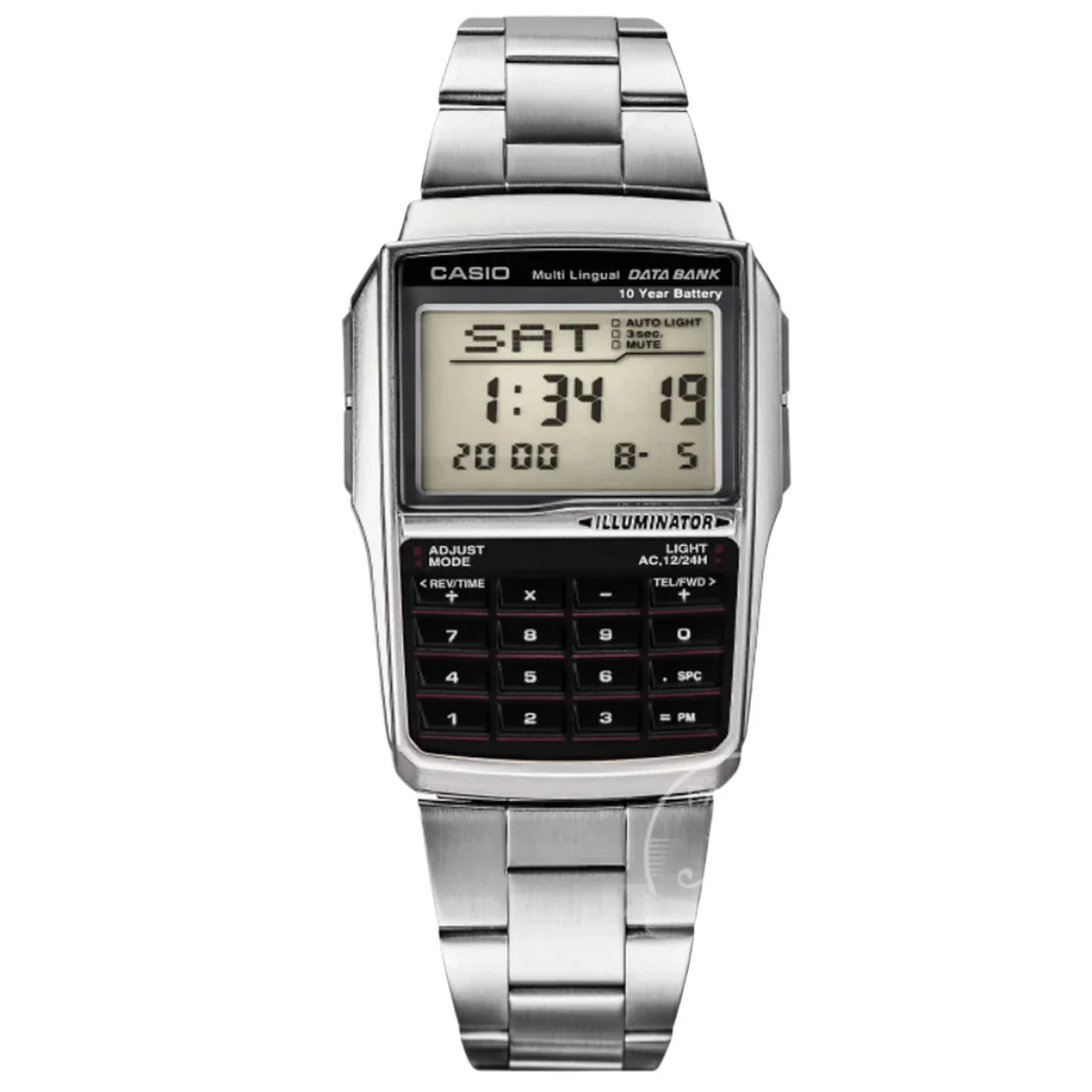 Retro military-style LED digital watch with stainless steel band and 50m waterproof performance.