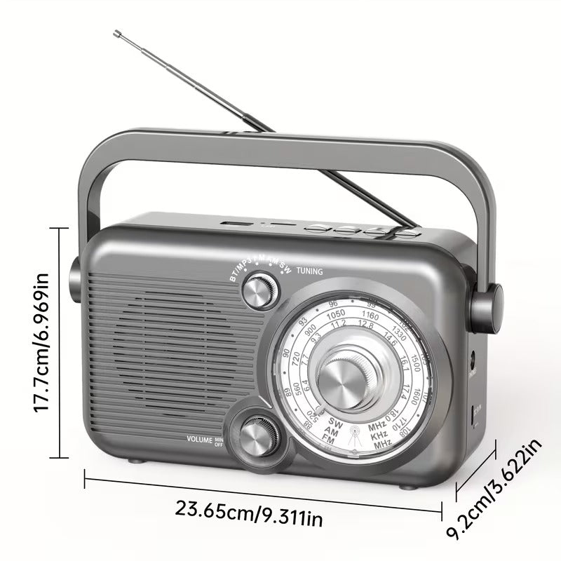 Features: AM/FM/SW Multi-Frequency Bands, External Antenna, USB Charging, TF Card Playback, Mini FM Transmitter