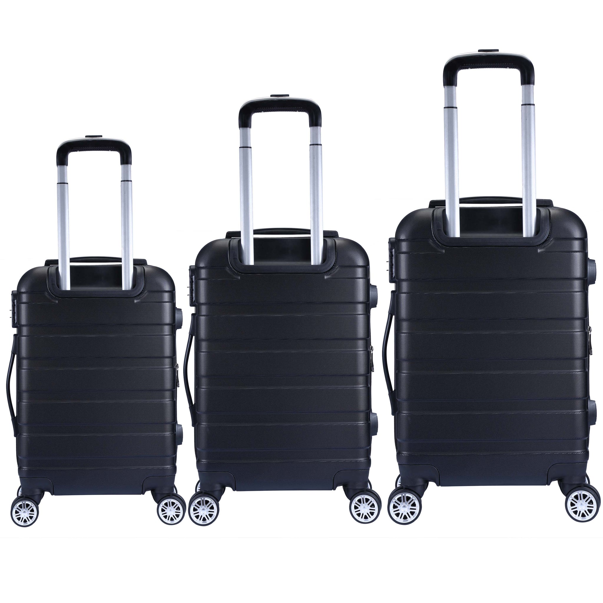 NNEDSZ 3pc ABS Luggage Suitcase Luxury Hard Case Shockproof Travel Set - Black