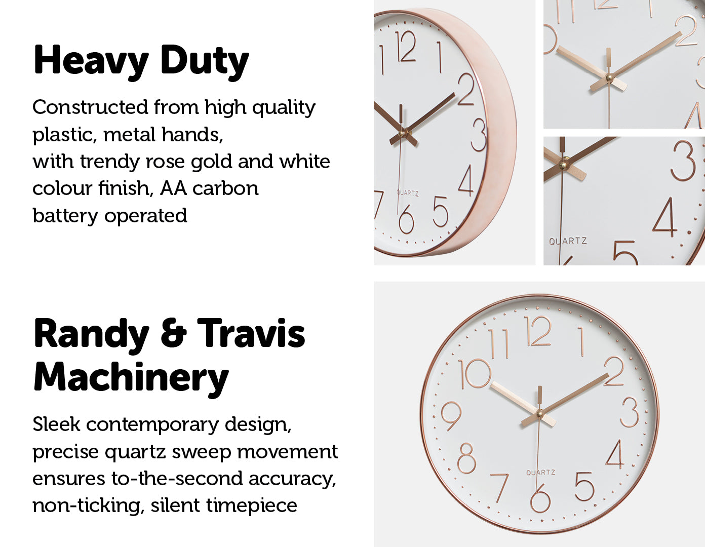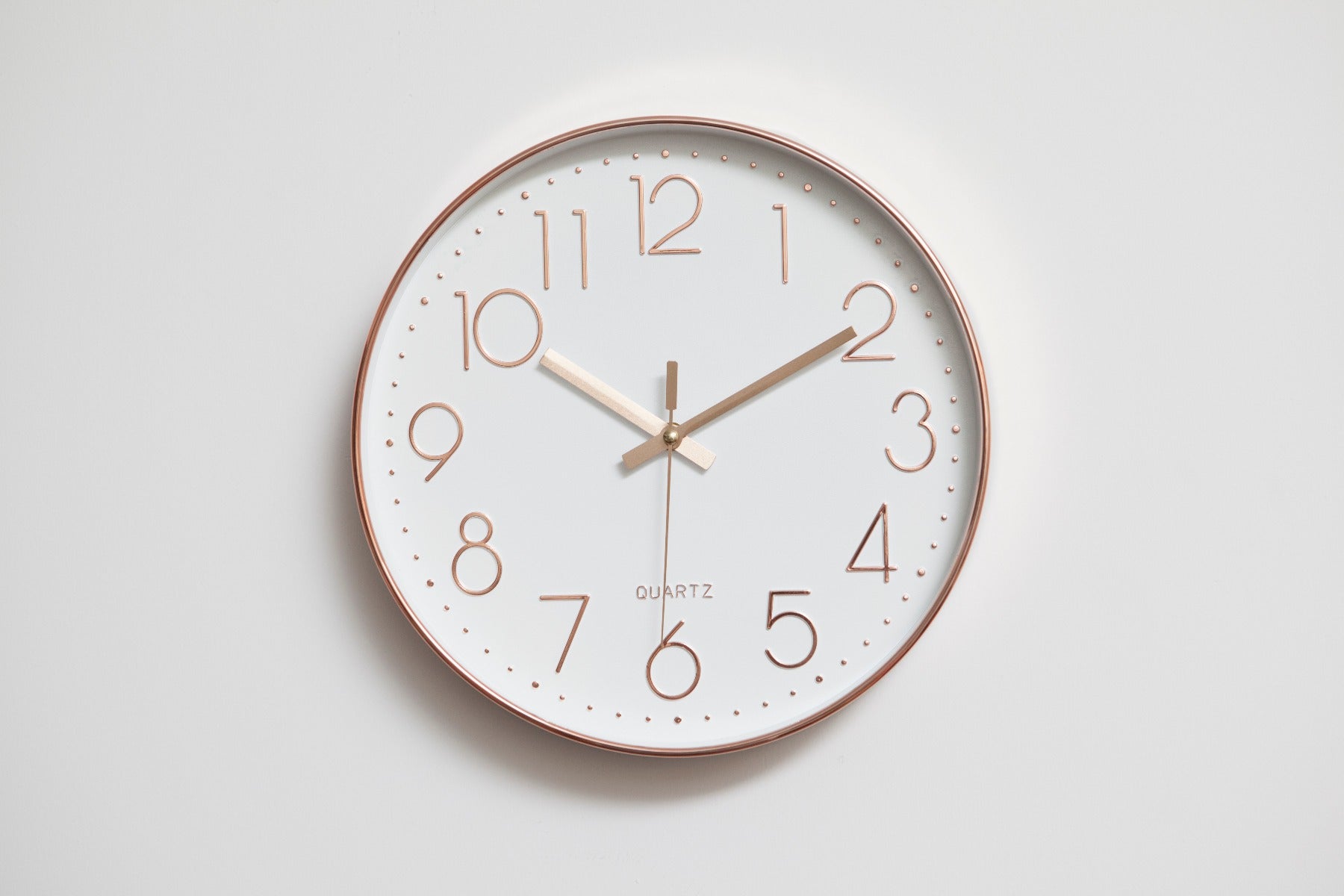 Contemporary and striking in looks, this rose gold wall clock from Randy & Travis Machinery will be a stunning addition to your home, office, or school’s wall décor. With Arabic numerals in an ultra-modern font, you’ll be able to see the time easily from wherever you are in the room. Its trendy rose gold frame will add a touch of extra class to any space.