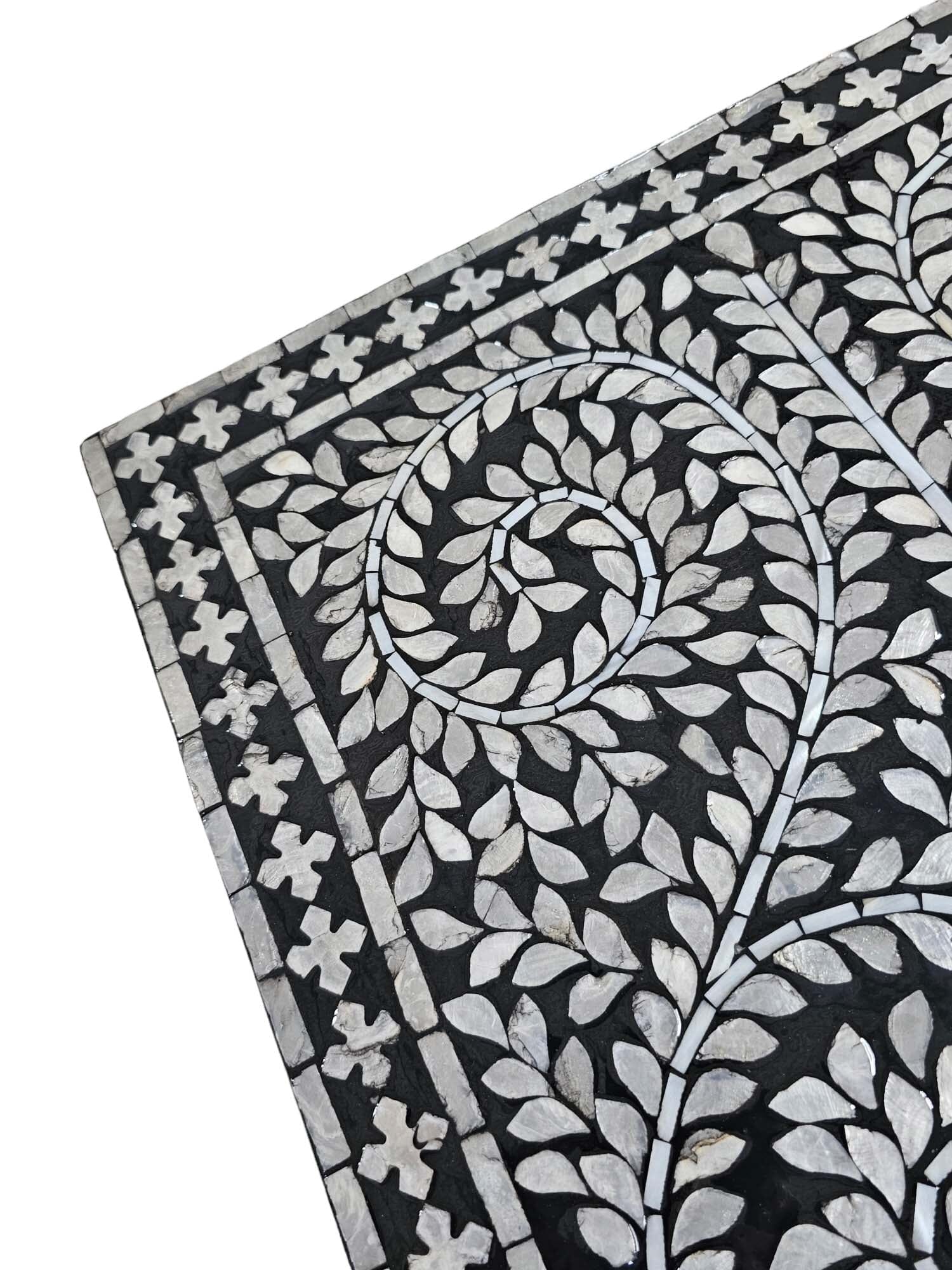 This piece meticulously handcrafted and 100% ethical. Each shell is laid on by hand to create the unique design