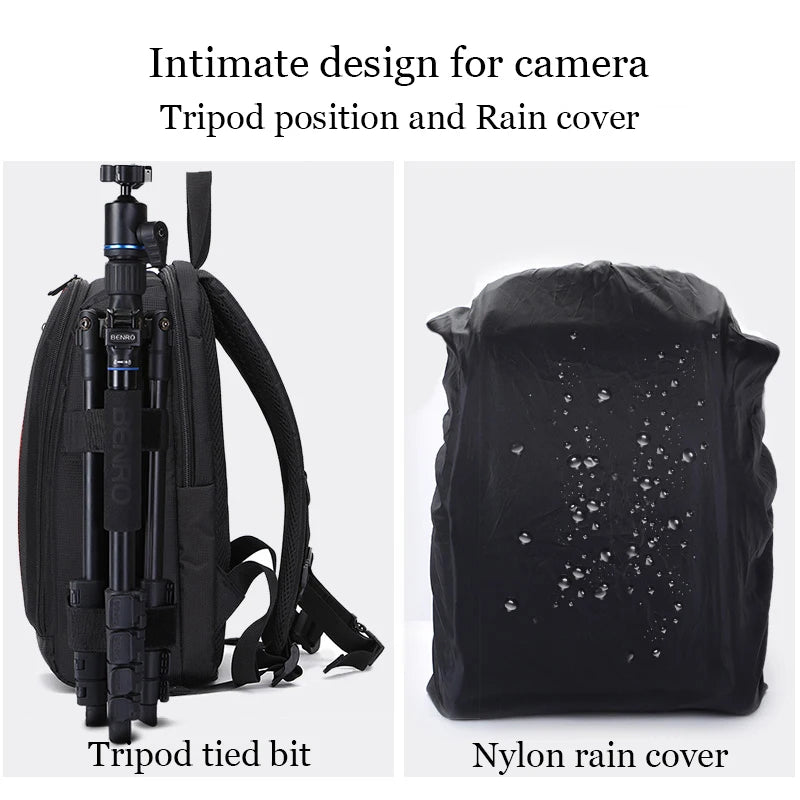 Functions: Waterproof, anti-collision, laptop compartment, tripod strap, rain cover, multiple pockets