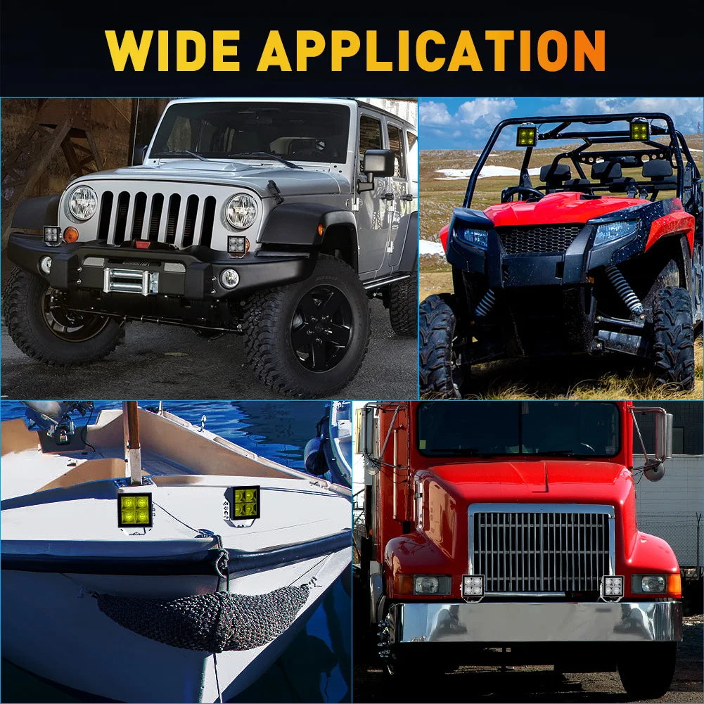 - Easy Installation & Versatile Applications: Ideal for DIY enthusiasts. Includes all necessary accessories for quick setup on various mounting surfaces. Suitable for a wide range of vehicles and applications including Off Road, Jeep, Truck, SUV, ATV, UTV, Car, Tractor, Boat, Motorcycle, and Construction Lighting.