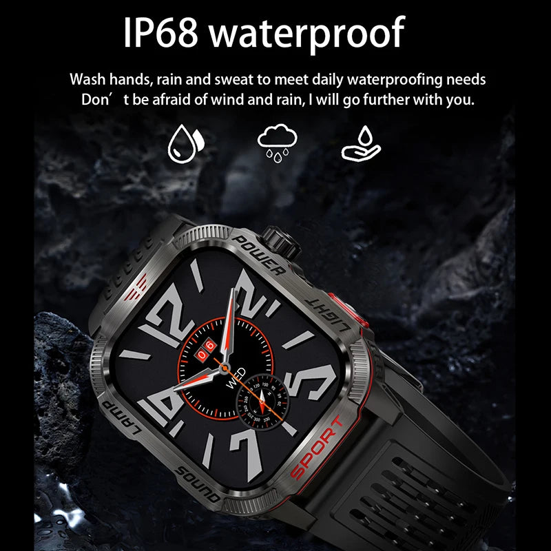 Adventure-ready smartwatch with flashlight, compass, voice assistant, and long-lasting power — your all-in-one outdoor and fitness companion.