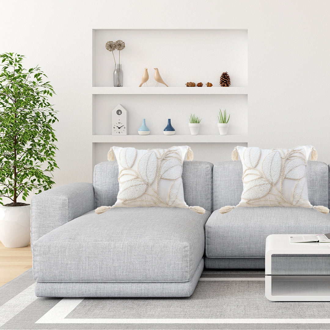 NNEAGS 45cm Wabi-sabi Cream Flower Cover & Beige Velvet Leaf Ring Square Throw Pillow