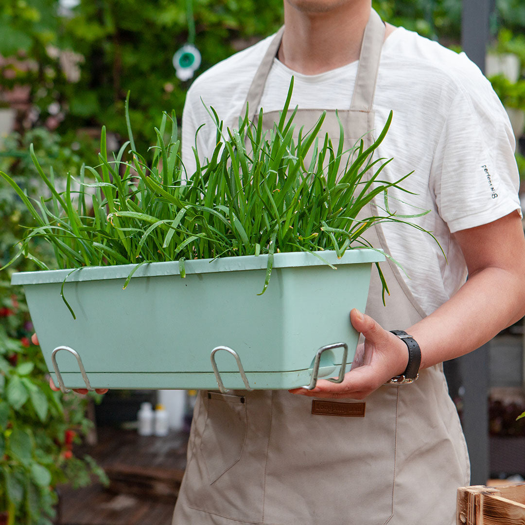 NNEAGS 49.5cm Green Rectangular Planter Vegetable Herb Flower Outdoor Plastic Box with Holder Balcony Garden Decor Set of 5