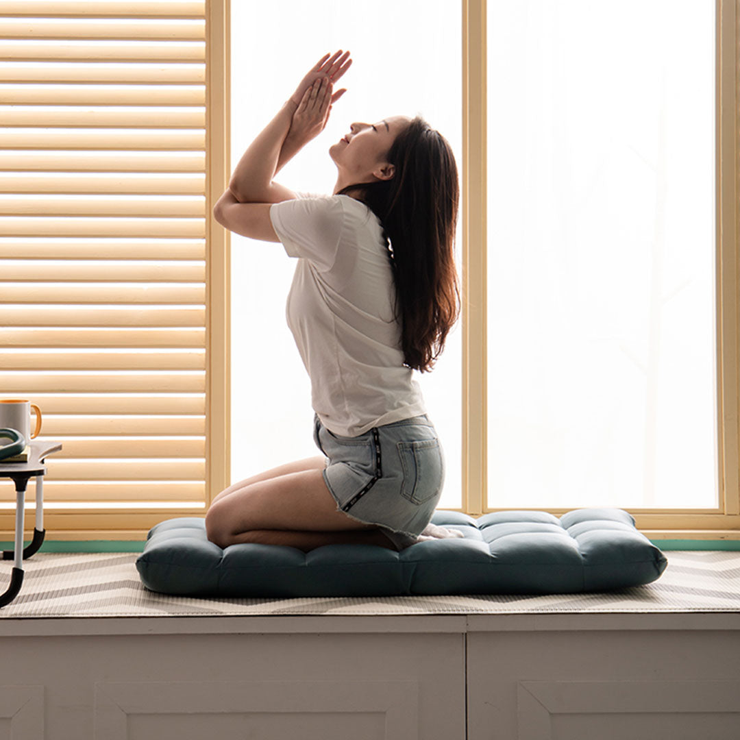 A multi-purpose floor recliner that can be used for reading, relaxing, yoga, watching TV, seminars, or discussion groups at the office. It can also be used as a chair for playing video games or as a chair for meditation.