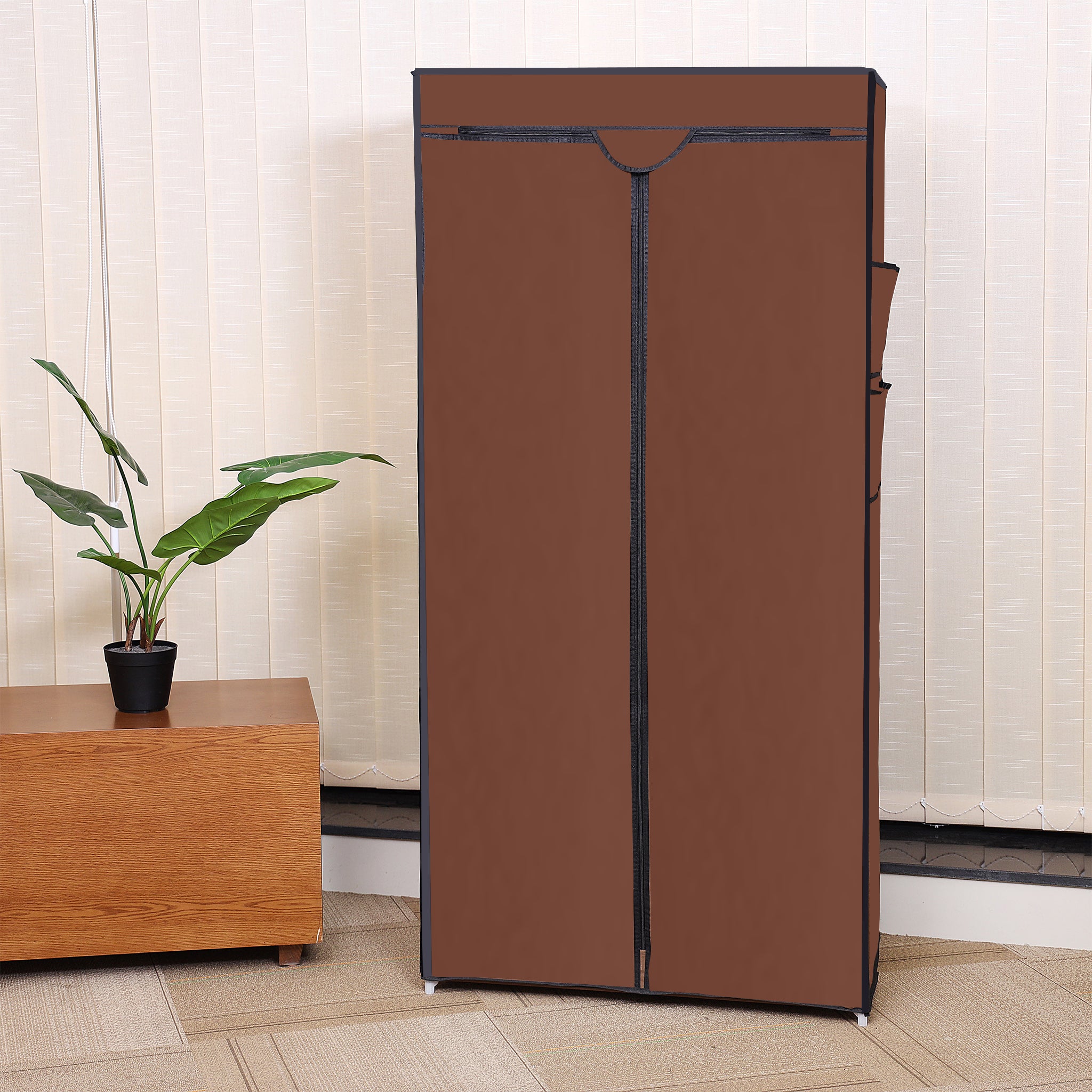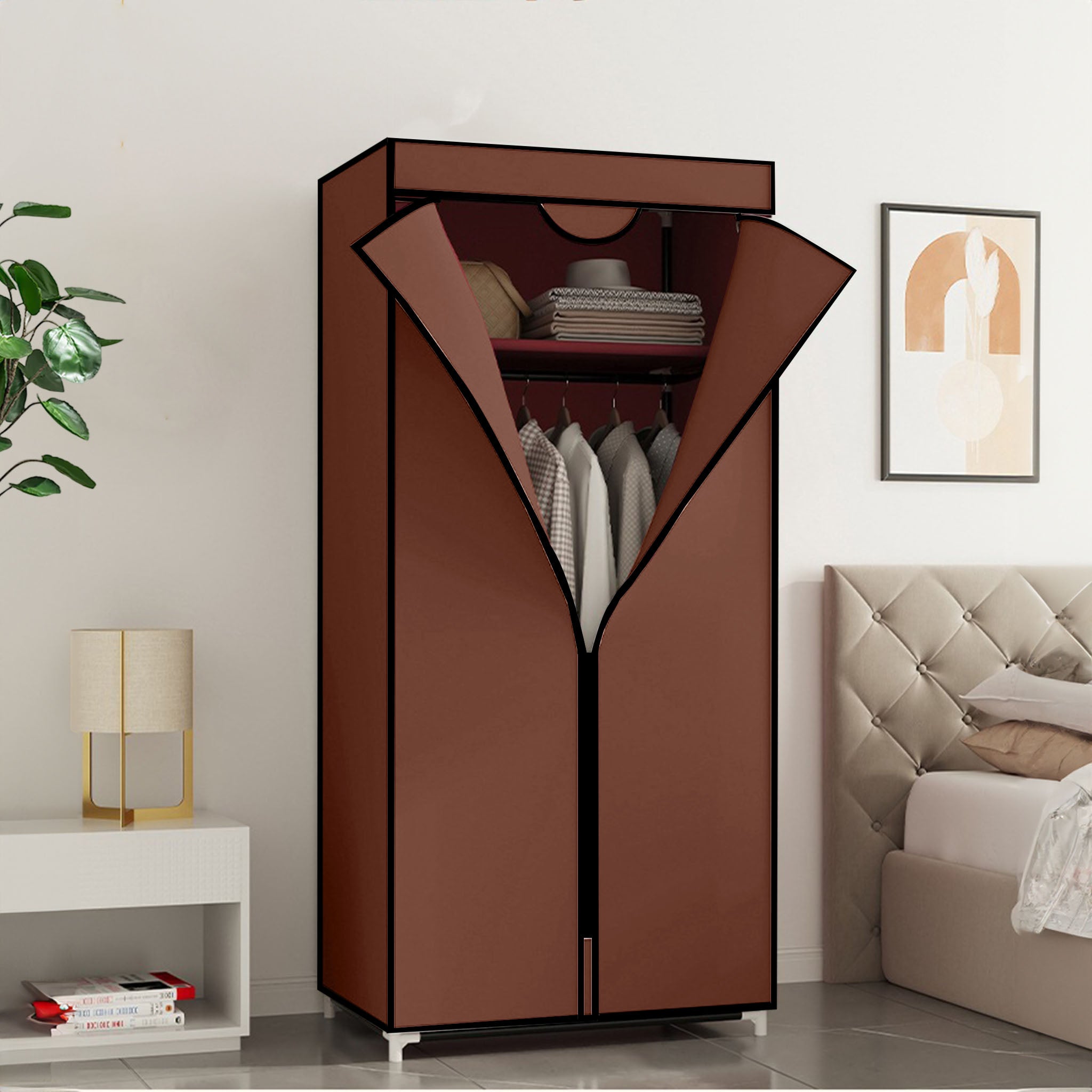 Introducing the Brown Clothes Organizer Rack with Zippered Dust Cover the perfect solution for keeping your clothing organized and protected from dust.Keep your clothes organized and protected with this practical and stylish Clothes Organizer Rack, an essential addition to any home!