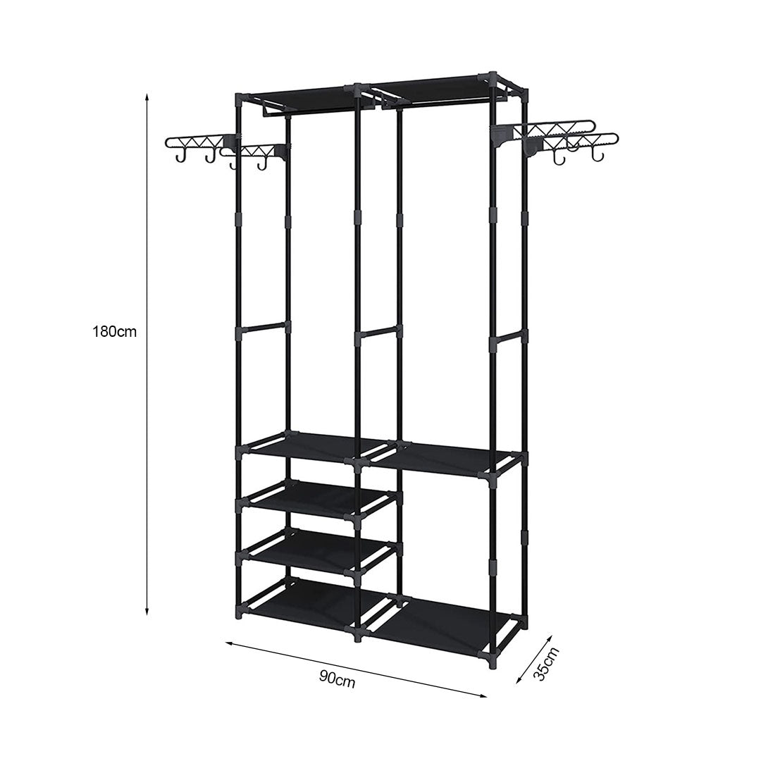 NNEAGS 90x35cm Hanging Clothes Rack Storage w/ 4 Layer Organizer and Side Hooks