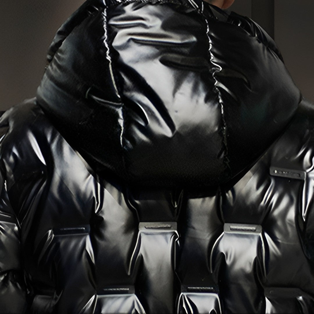 NNEAGS abbee Black Large Winter Hooded Glossy Down Jacket Stylish Lightweight Quilted Warm Puffer Coat