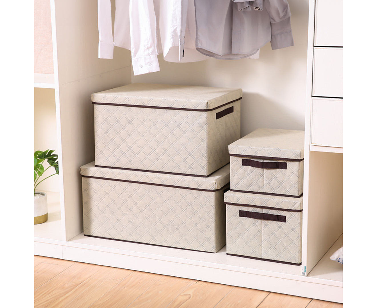 Can be placed in a wardrobe and stacked for storage