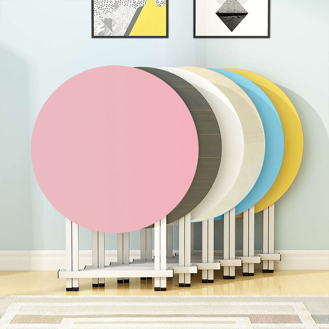 NNEAGS Pink Dining Table Portable Round Surface Space Saving Folding Desk Home Decor