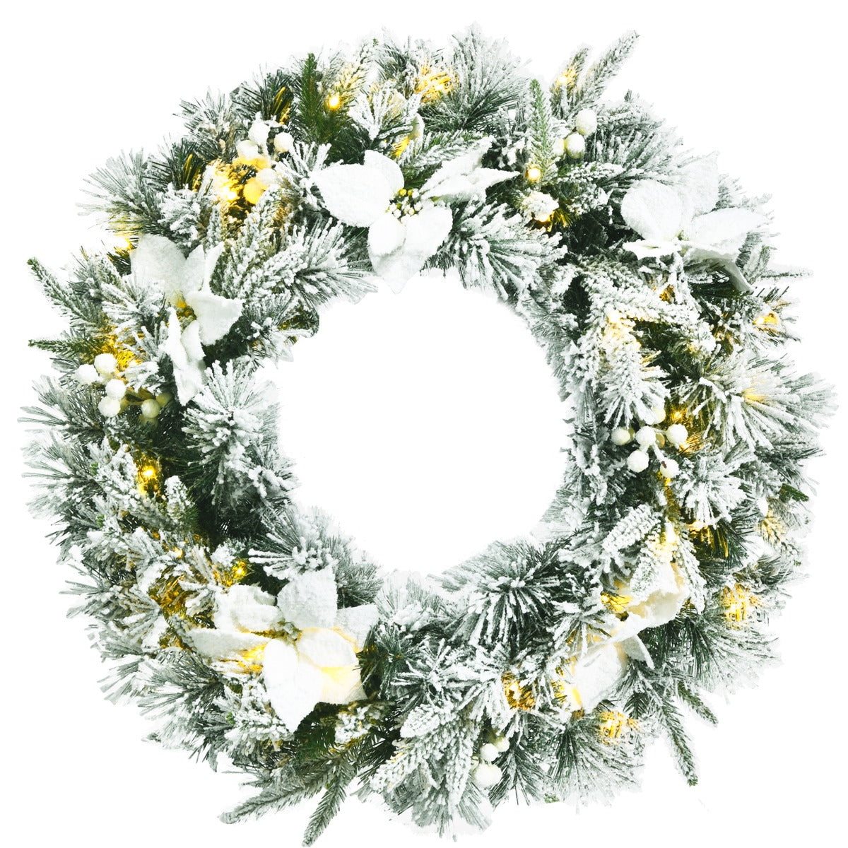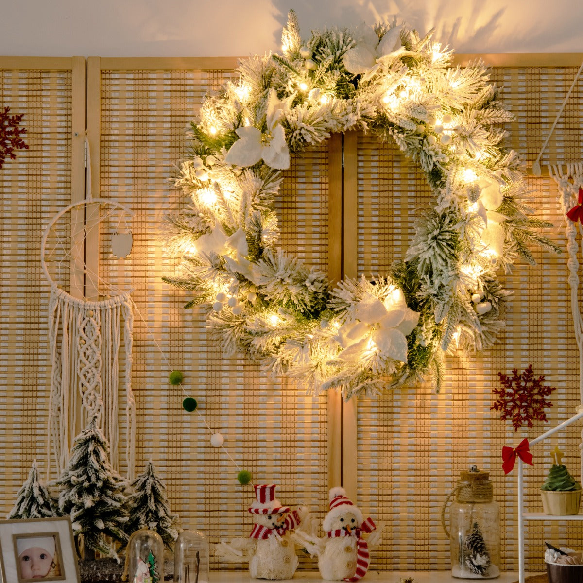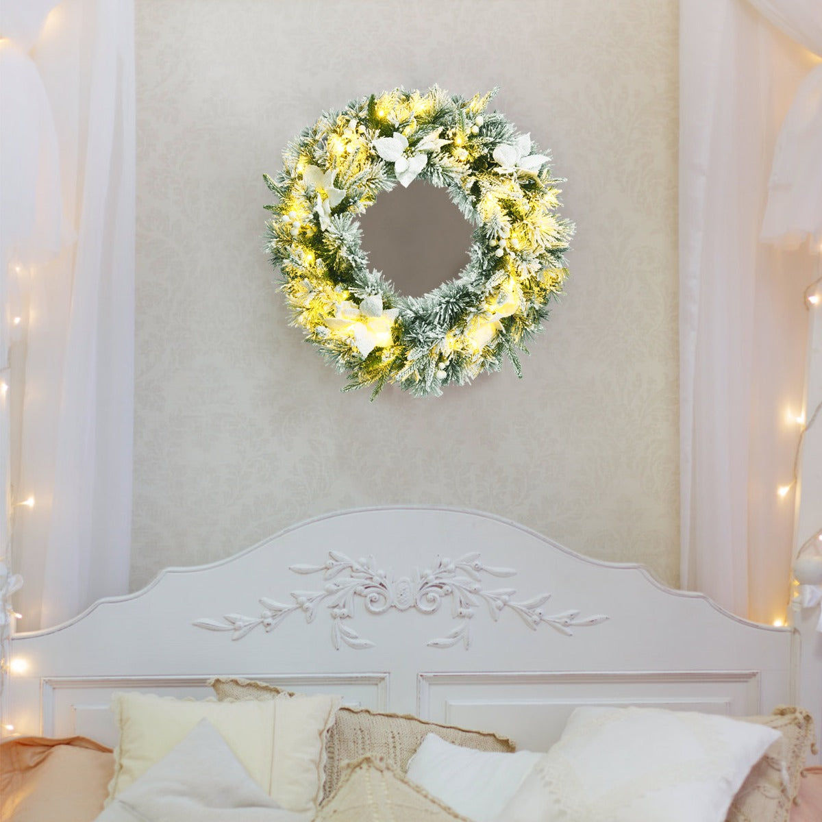 NNECW 0.6M Pre-Lit Artificial Christmas Wreath with 50 LED Lights and 114 Tips