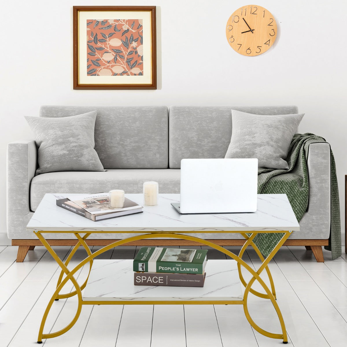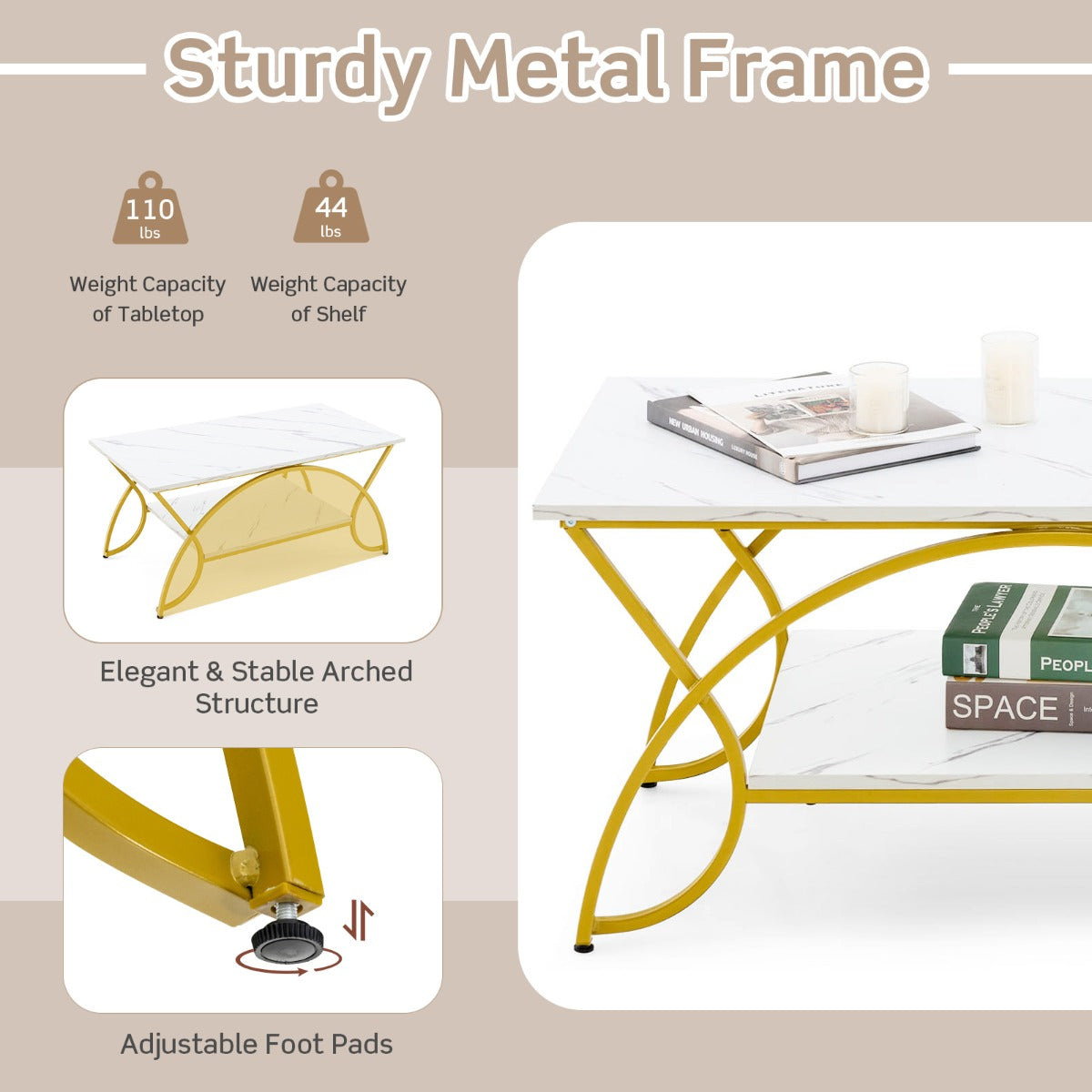 Modern Stylish Coffee Table: The coffee table features a white faux marble tabletop that gives a chic and luxurious look. Paired with the sleek golden frame, the contemporary coffee table can match the existing room furniture of different styles and add a modern flair to your living room.