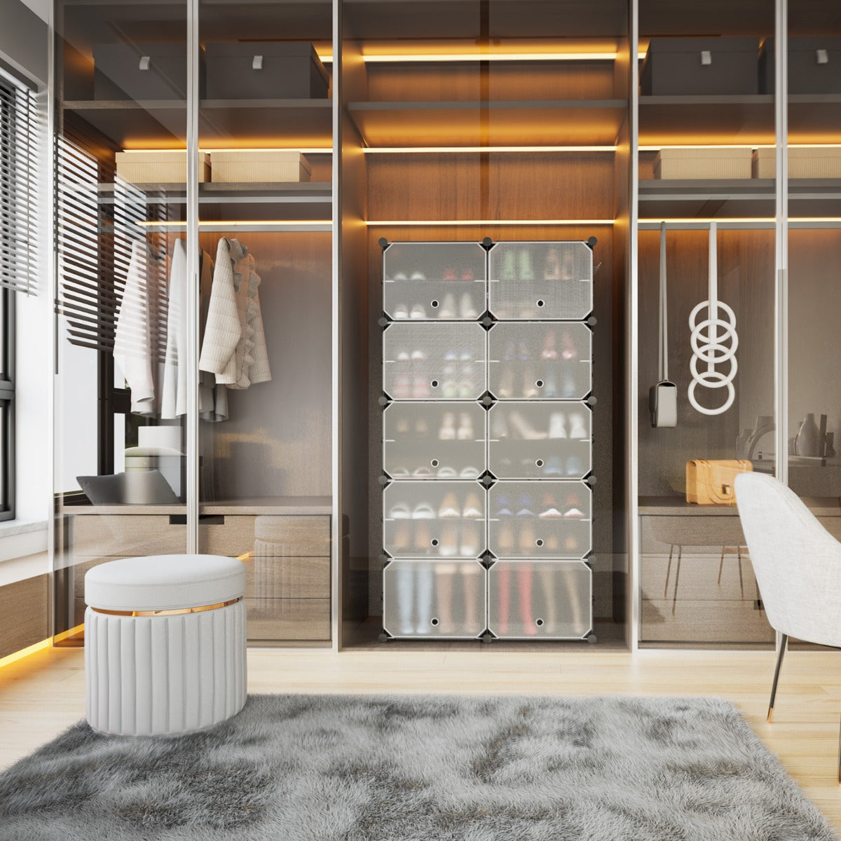 You can use our shoe storage cabinet in the hallway, entryway, living room, etc. Besides, there are 12 cubes and 5 hanging hooks for you to store a variety of items. Each cube supports up to 4 pairs of shoes. Meanwhile, removable shelves allow you to better organize its interior storage space for different sized stuff. Solid steel frame and strong materials keep it durable and stable. In addition, the 48 pairs shoe tower rack is easy to assemble and clean, which is labor-saving and time-saving. Bullet Point: DIY Your Storage Space: This modular shoe rack cabinet is super easy to assemble and detach. Thus, you can freely customize the storage space to make it suitable for shoes of different heights. And the number of panels and connectors for different combinations may vary. Large Shoe Storage Organizer: 12 cubes with 2 tiers and 5 hanging hooks provide sufficient storage, meeting all your storage needs. You can place your shoes, books, toys, clothes, ornaments or storage baskets in it. Besides, removable shelf offers one-tier or two-tier storage for you to put higher shoes, such as high heels and boots. Strong Material and Stable Structure: All of these materials are strong and durable enough to ensure long-lasting service life. Solid steel frame and premium connectors keep the shoe cabinet stable and sturdy. Each cube holds up to 4 pairs of shoes, and the whole shoe rack cabinet accommodates 48 pairs of shoes. Versatile Design for Wide Application: Combing flexible shape and modern style, this cube shoe rack is suitable for any room size and fits well with your home decor. It can be used as the 12-cube shoe rack or multi-layer storage organizer in your hallway, entryway, living room, etc. Easy Assembly and Considerate Details: Detailed user manual helps you to easily and quickly assemble it. Provided hammer ensures better fixation, making it not easy to loose. Dust-proof doors avoid outside dust. Apart from that, the waterproof surface guarantees easy cleaning. Specifications:Color: White Material: PP + Steel Overall Dimension: 124 cm x 32 cm x 125 cm (L x W x H) Size of Hook: 25.5 cm x 19 cm (L x W) Size of Each Cube: 40 cm x 30 cm x 30 cm(L x W x H) Size of Each Door Panel: 40 cm x 30 cm(L x W) Size of Larger Black Panel: 40 cm x 30 cm(L x W) Size of Smaller Black Panel: 30 cm x 30 cm(L x W) Net Weight: 10.5 kgBox Qty:1(May vary by batch) Package includes: 1 x Shoe Storage Organizer 1 x Instruction